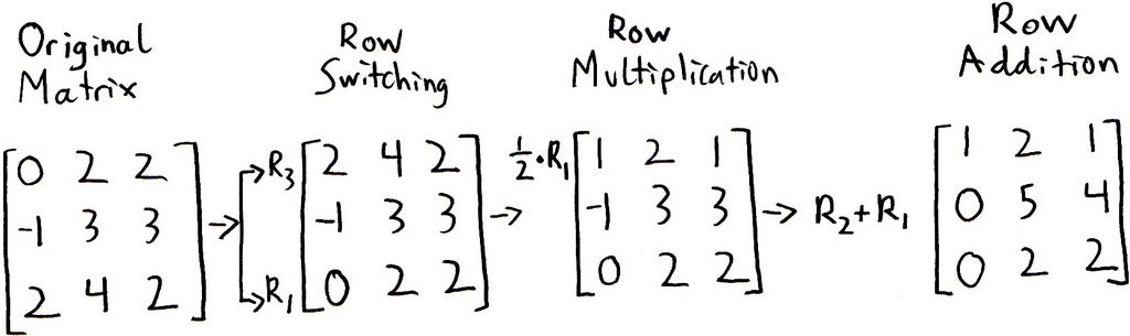 If the value in the first row is not zero use it as pivot. This online calculator find row. Find the matrix determinant the rank raise the matrix to a power find the sum and the multiplication of matrices.