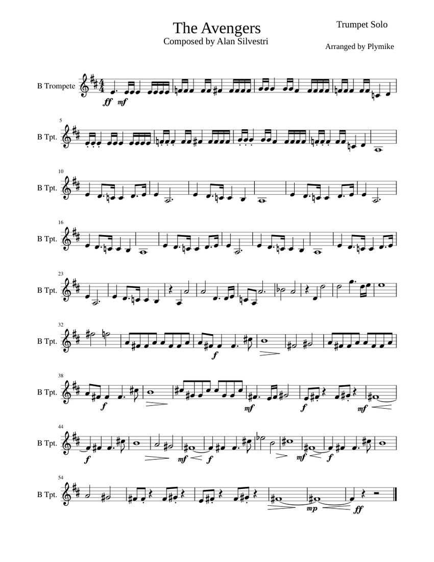 Web The Trumpet Man The Avengers Sheet Music Trumpet Solo in Bb Major - Download Print - SKU. Web Avengers Theme - Flat Avengers Theme For Trumpet Quintet By Robert Starling 12 followers 7 scores Arrangement of The Avengers by Alan Silvestri for trumpet. Composed by Alan Silvestri.